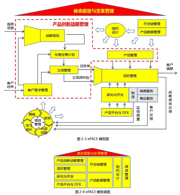 e = e-Times(信息化时代),PACE = Product And Cycle-time Excellence(产品生命周期优化法)。